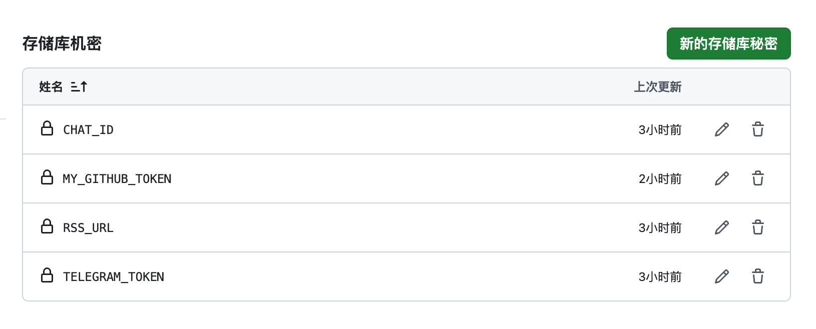 步骤: Settings(设置) → Secrets and variables(和变量) → Actions(行动) → Repository → secrets(存储库机密) → New repository secret(创建存储库机密)